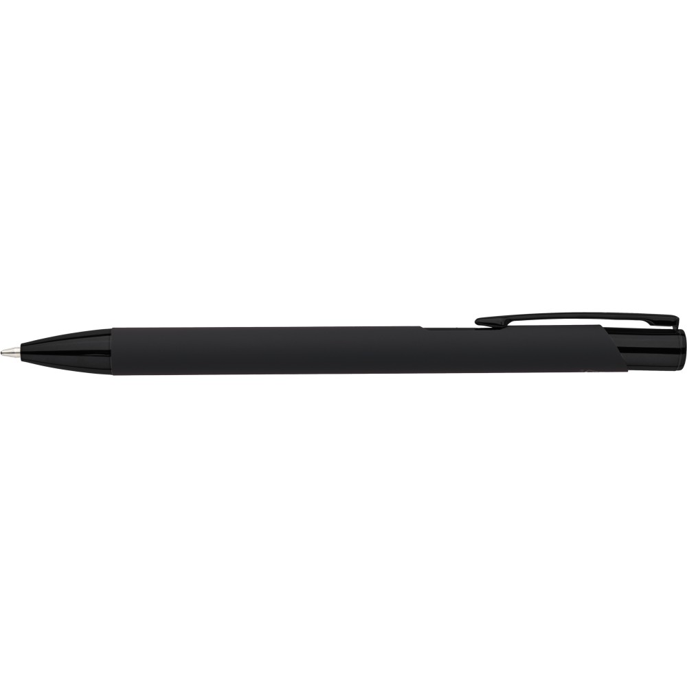 Újrahasznosított alumíniumból készült, gumírozott felületű golyóstoll, a toll színével harmonizáló UV-bevonatú műanyag és fém díszítéssel. Gravírozás után fényes tükörhatás jelenik meg. A tolltesten gravírozott recycled (újrahasznosított) alapanyagra utaló logó található. Megközelítőleg 800 méter íráshosszúságú, kék színű tollbetéttel.