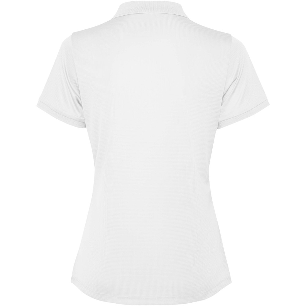 Rövidujjú galléros női póló. Erősített, fedett varrások a belső gallérban. 1x1 bordázott kézelő és gallér. Oldalsó varrások. 3 gombos nyakrész és oldalsliccek. 120g/m2.