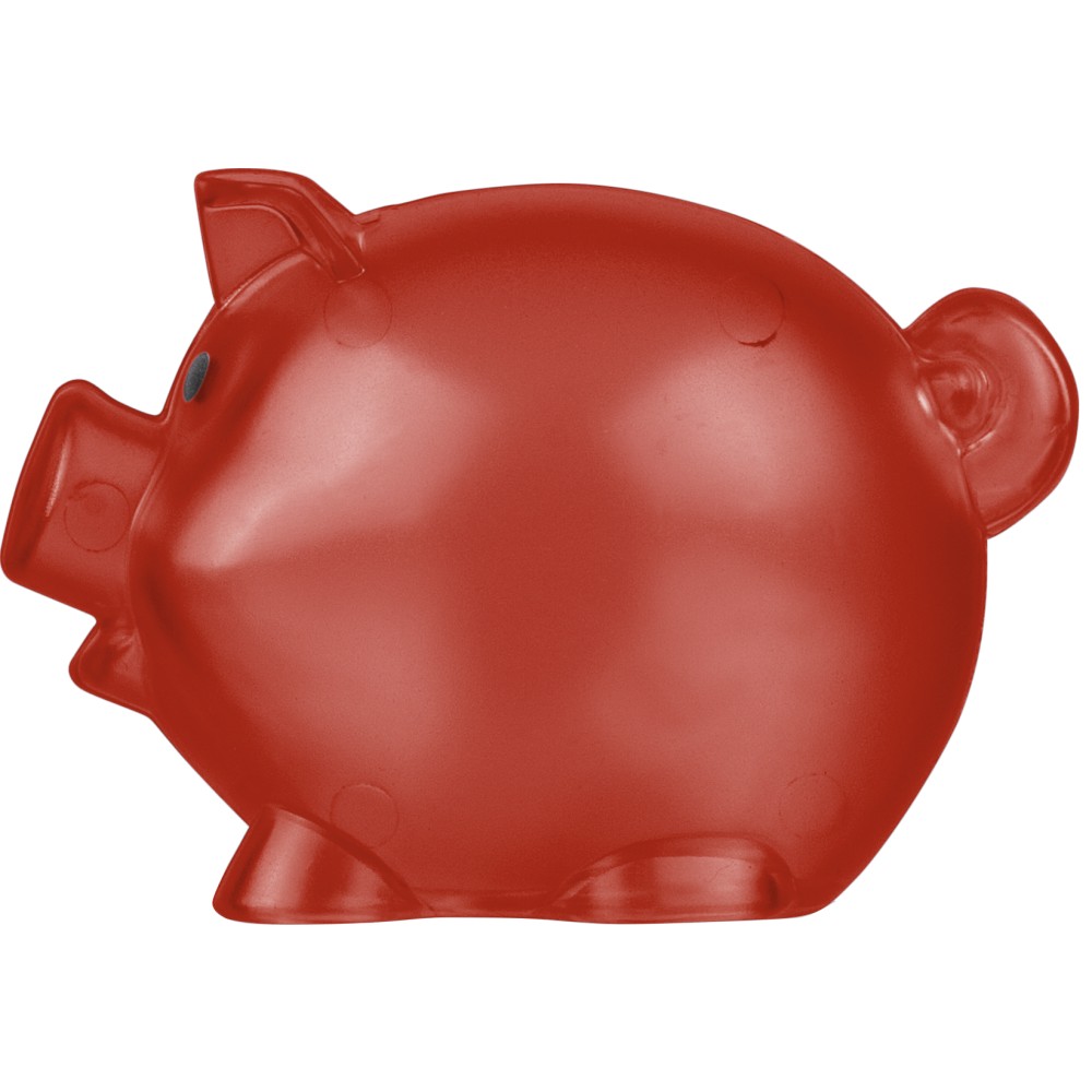 Újrahasznosított PS műanyagból készült, malacpersely. A hátoldalon recycled (újrahasznosított) alapanyagra utaló logó található.