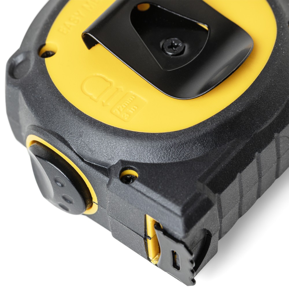 ABS és TPR anyagból készült mérőszalag, 3 m hosszúságú és 16 mm szélességű, kétoldalas fém szalaggal. Átlátszó felső ablak a pontos belső mérésekhez. Rendelkezik rögzítés/kioldás funkcióval, hátoldali csipesszel és poliészter csuklópánttal. Darabonként illusztrációval ellátott barna kartondobozba csomagolva.