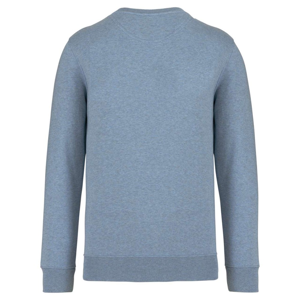 85 % bio, fésült pamutból és 15 % újrahasznosított poliészterből készült. Unisex. Egyenes szabás. LSF (Low Shrinkage Fleece: előzsugorított polár). Kerek nyakkivágás. Félhold alakú. Méretcímke organikus pamut és újrahasznosított poliészter logóval. 1x1 bordás nyakpasszé, alsó szegély és kézelő. Duplaöltés a kézelőn, karöltőben és kézelőn. Egyszeres felülvarrás a nyakkivágáson. Belső szalagozott nyakrész. A nyakrészen nincs márkajelzés, csak méretcímke a könnyebb dekorálás érdekében. A ruhadarabhoz kartonpapírból készült ismertetővel, amely felsorolja a felhasznált környezetbarát anyagokat. OEKO-TEX N CQ1007/7 STANDARD 100 tanúsítvánnyal rendelkezik. IFTH. 350 g/m2.