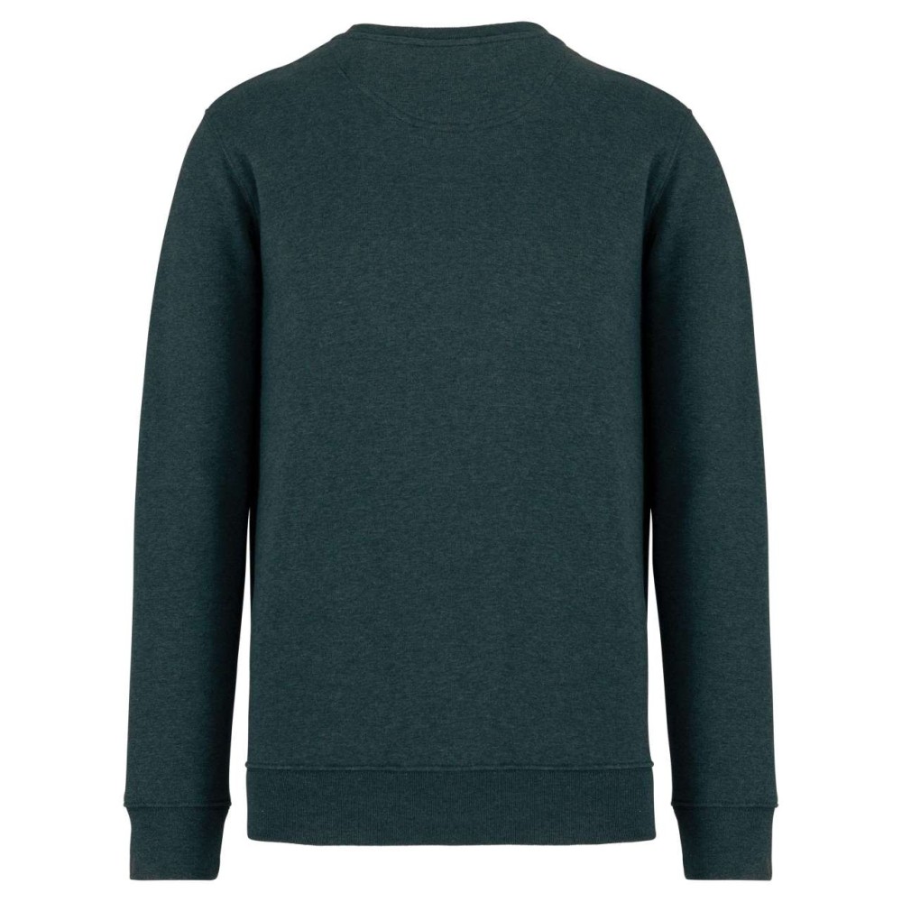 85 % bio, fésült pamutból és 15 % újrahasznosított poliészterből készült. Unisex. Egyenes szabás. LSF (Low Shrinkage Fleece: előzsugorított polár). Kerek nyakkivágás. Félhold alakú. Méretcímke organikus pamut és újrahasznosított poliészter logóval. 1x1 bordás nyakpasszé, alsó szegély és kézelő. Duplaöltés a kézelőn, karöltőben és kézelőn. Egyszeres felülvarrás a nyakkivágáson. Belső szalagozott nyakrész. A nyakrészen nincs márkajelzés, csak méretcímke a könnyebb dekorálás érdekében. A ruhadarabhoz kartonpapírból készült ismertetővel, amely felsorolja a felhasznált környezetbarát anyagokat. OEKO-TEX N CQ1007/7 STANDARD 100 tanúsítvánnyal rendelkezik. IFTH. 350 g/m2.