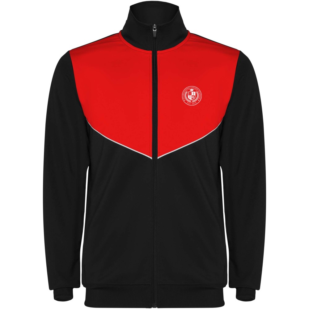 Könnyű és rugalmas anyagból készült melegítő. A végig cipzáros felső kontrasztos színű és varrású díszítésekkel dekorált a mellrészen. Oldalzsebek. Bordázott ujj- és és derékpasszé. Nadrág gumis derékkal és húzózsinórral, kontrasztos oldalsó varrással. Cipzáras szegély.