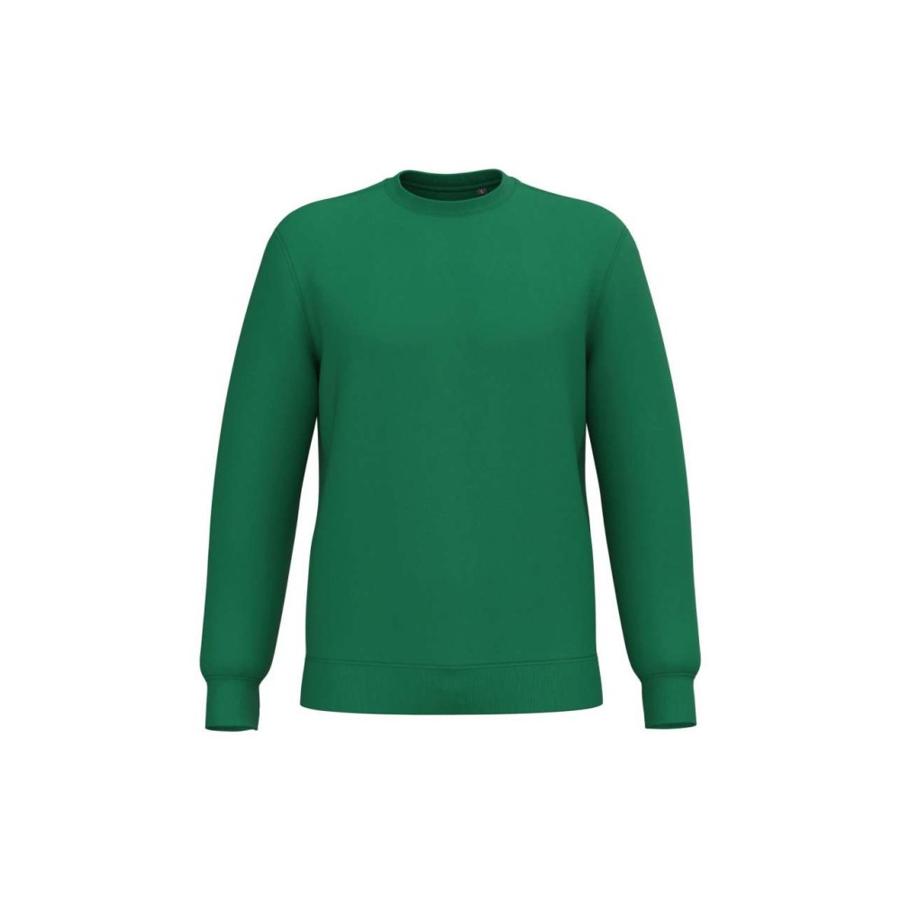 280 g/m2, 50% gyűrött pamut/50% újrahasznosított poliészter. Csiszolt polár anyag, egyenes szabás, környakas fazon. Vágott és varrott, 1x1 bordás, csőszerű összeállítás a nyakvonal, a mandzsetták és az alsó szegély jobb kiviteléért. Tónusban megegyező jersey szalag a nyakvonal belsejében. Nincs márkajelzés a nyakvonalon, csak méretcímke a könnyű dekorálás érdekében.