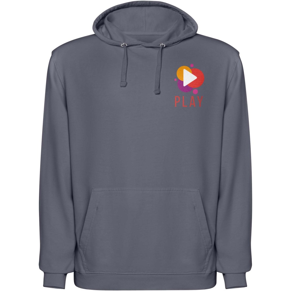 Koptatott (acid-wash) felületkezeléssel készült uniszex kapucnis pulóver, amely 2x1 bordás kötésű kézelőkkel és alsó szegéllyel készült. A kapucni színazonos single jersey bélést és passzoló lapos húzózsinórokat kapott, a nyakrésznél pedig esztétikus, színazonos fedőöltés található. A pulóver praktikus kenguruzsebbel rendelkezik a kényelmes használat érdekében. 100% pamut, 250 g/m2.