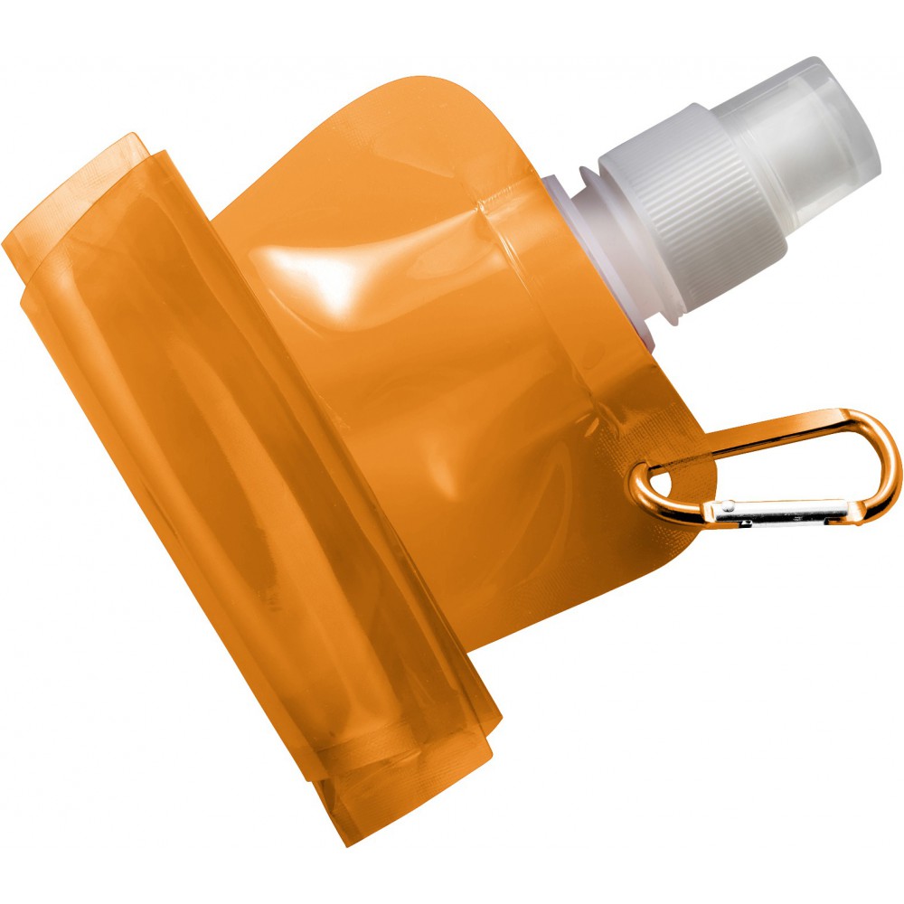 Összehajtható vizeskulacs karabinerrel. Nem szivárgásmentes. Mosogatógépben nem tisztítható. 420ml. BPA-mentes műanyag.