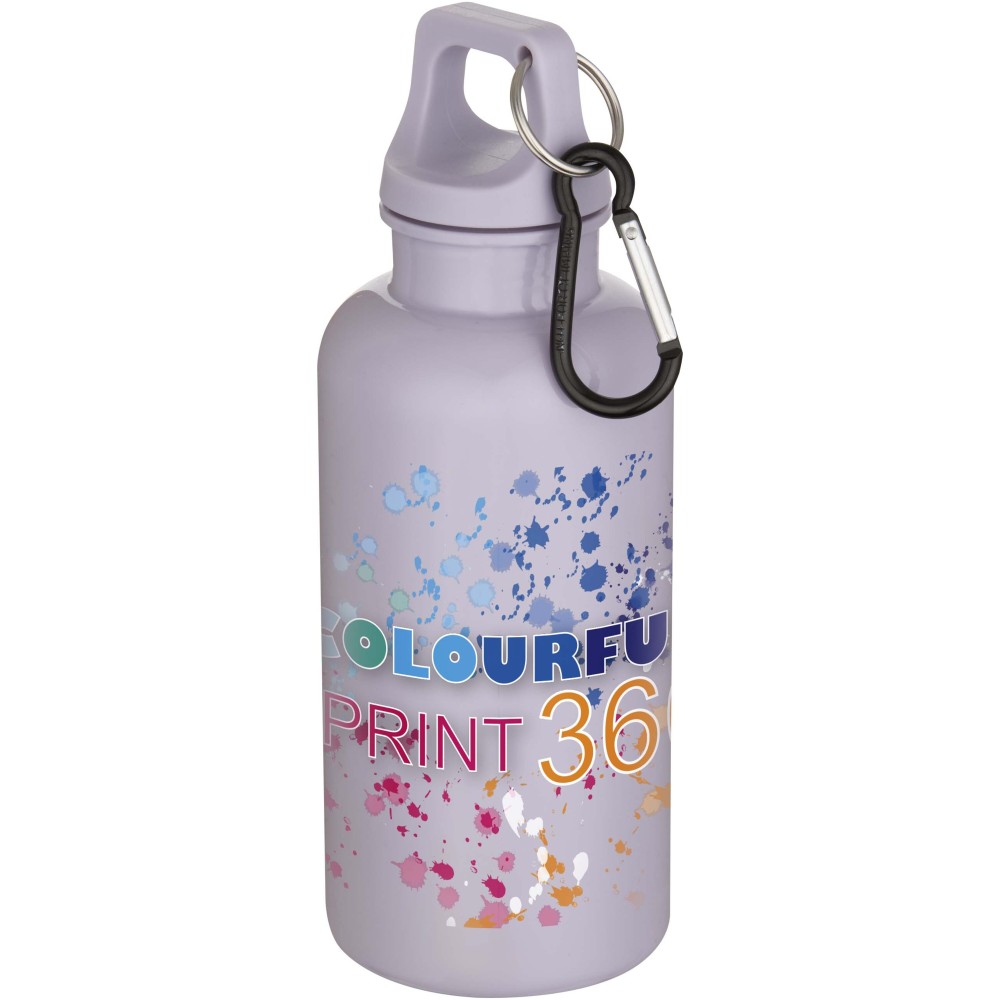 Az RCS tanúsítvánnyal rendelkező RPET-ből készült, tartós, mégis könnyű, 400 ml-es kulacs lehetővé teszi a folyamatos hidratálást. Tökéletes kísérő sportoláshoz, kirándulásokhoz vagy irodai használatra. A szimplafalú Oregon palack csavaros kupakkal rendelkezik, és bőséges felületet kínál bármilyen logó elhelyezésére. A mellékelt karabiner segítségével (mely mászásra nem alkalmas) a kulacs biztonságosan táskához rögzíthető. A termék megfelel az EFSA által jóváhagyott PET újrahasznosítási szabályoknak.