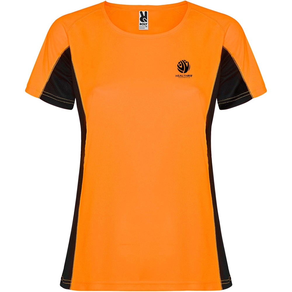 Roly Shanghai rövid ujjú női sportpóló, Fluor Orange, Black